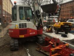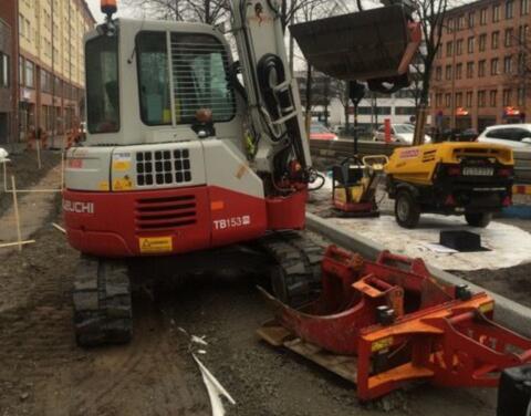 Utrustning: Rototilt med grip, planeringsskopa, grävskopa, smalskopa, tjälkrok, gallerskopa, dikesskopa, stolpskopa, bilhammare, förlängningsarm L= 1,5m med gripskopa och rotator.